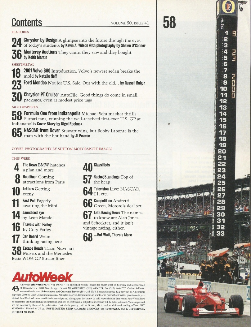 Reviews AUTOWEEK 2000 OCT 02 - VOLVO S60, FORD MONDEO, M-B W196 GP STREAMLINER, GTP