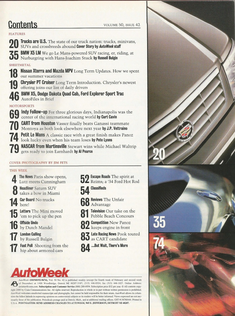 Reviews AUTOWEEK 2000 OCT 09 - ACURA MDX, BMW X5 LM, BILL COUCH '34 FORD 3-WINDOW ROD