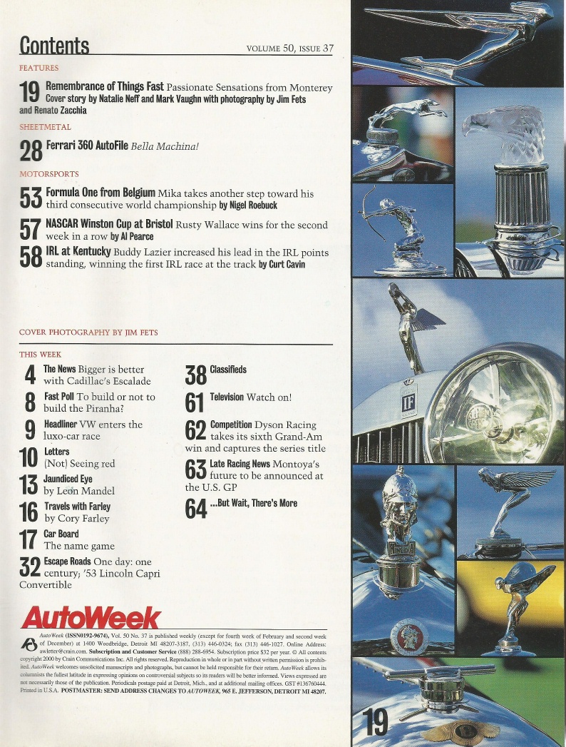Reviews AUTOWEEK 2000 SEPT 04 - ESCALADE, FERRARI 360, LINCOLN CAPRI, MONTE CARLO SS