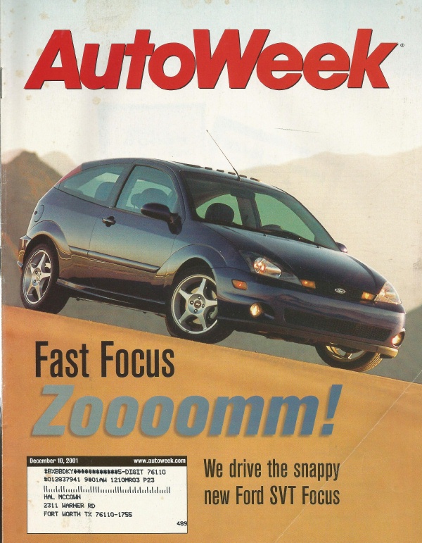 Reviews AUTOWEEK 2001 DEC 10 - SVT FOCUS, WRX, CIVIC HYBRID, MATRIX, JAVELIN CARDIN