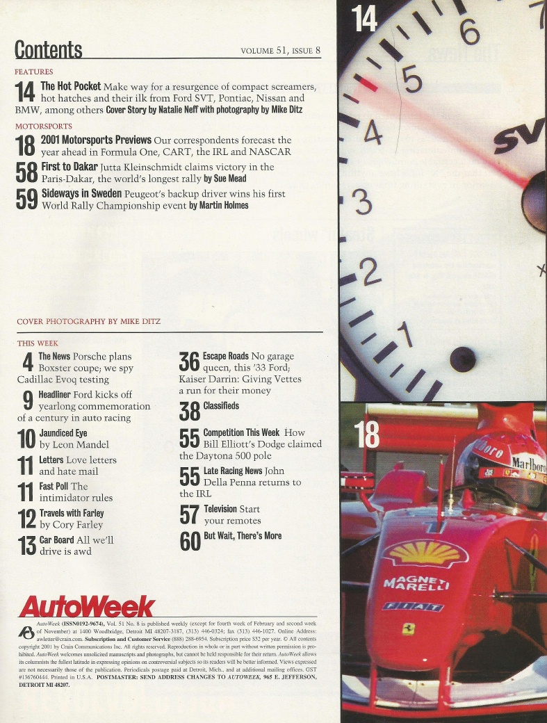 Reviews AUTOWEEK 2001 FEB 19 - FOCUS SVT, PARIS-DAKAR, KAISER DARRIN, ROVANPERA