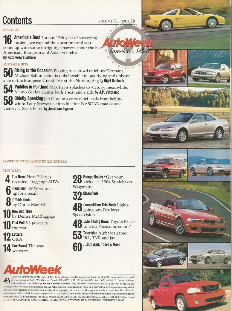 Reviews AUTOWEEK 2001 JULY 02 - NEW BMW 3-SERIES, ACCORD & CORVETTE, '64 WAGONAIRE