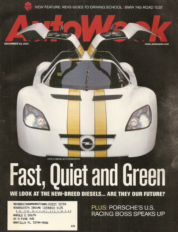 Reviews AUTOWEEK 2002 DEC 23 - OPEL ECO-SPEEDSTER, M-B C30 CDI AMG, 745i, 1925 DUESY
