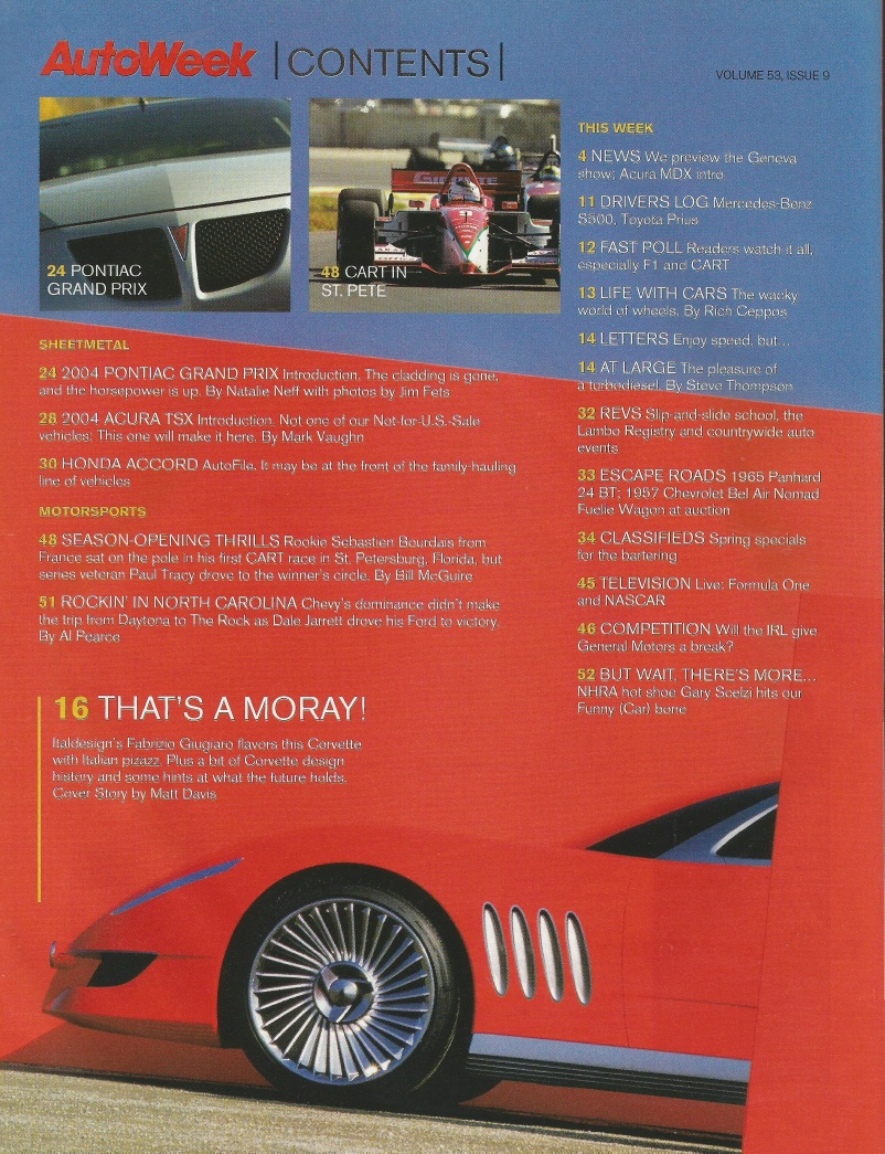 Reviews AUTOWEEK 2003 MAR 03 - ACURA TSX, VETTE DESIGN, '57 NOMAD F-I, NEW GRAND PRIX
