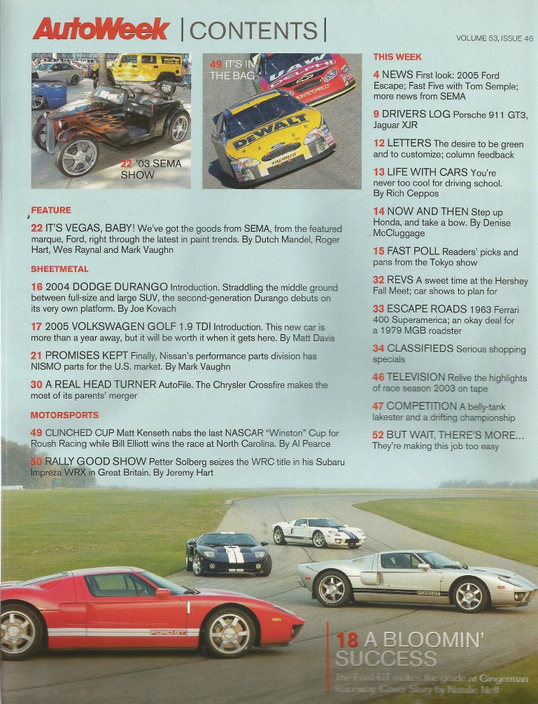Reviews AUTOWEEK 2003 NOV 17 - FORD GT, CROSSFIRE, GOLF TDI, 1963 FERRARI SUPERAMERICA