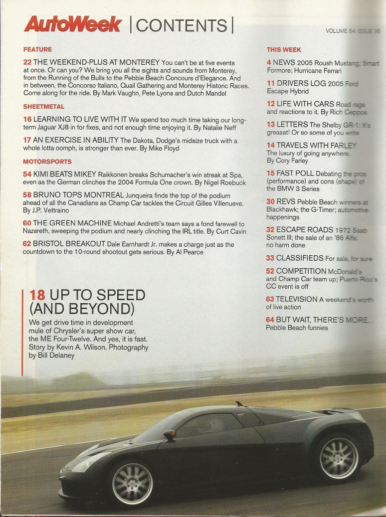 Reviews AUTOWEEK 2004 SEPT 06 - ROUSH MUSTANG, XJ8, SAAB SONETT III, ME FOUR-TWELVE