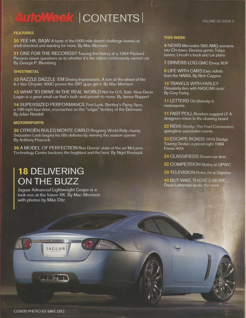 Reviews AUTOWEEK 2005 JAN 31 - XK8, 1954 PACKARD PANAMA, 300C SRT-8, 1915 DODGE TOUR*