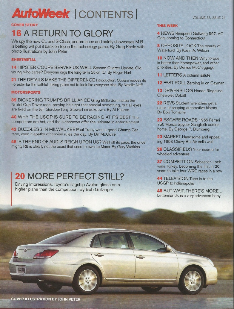 Reviews AUTOWEEK 2005 JUNE 13 - M-B S/CL CLASS, AVALON, '55 FERRARI 750 MONZA SPYDER