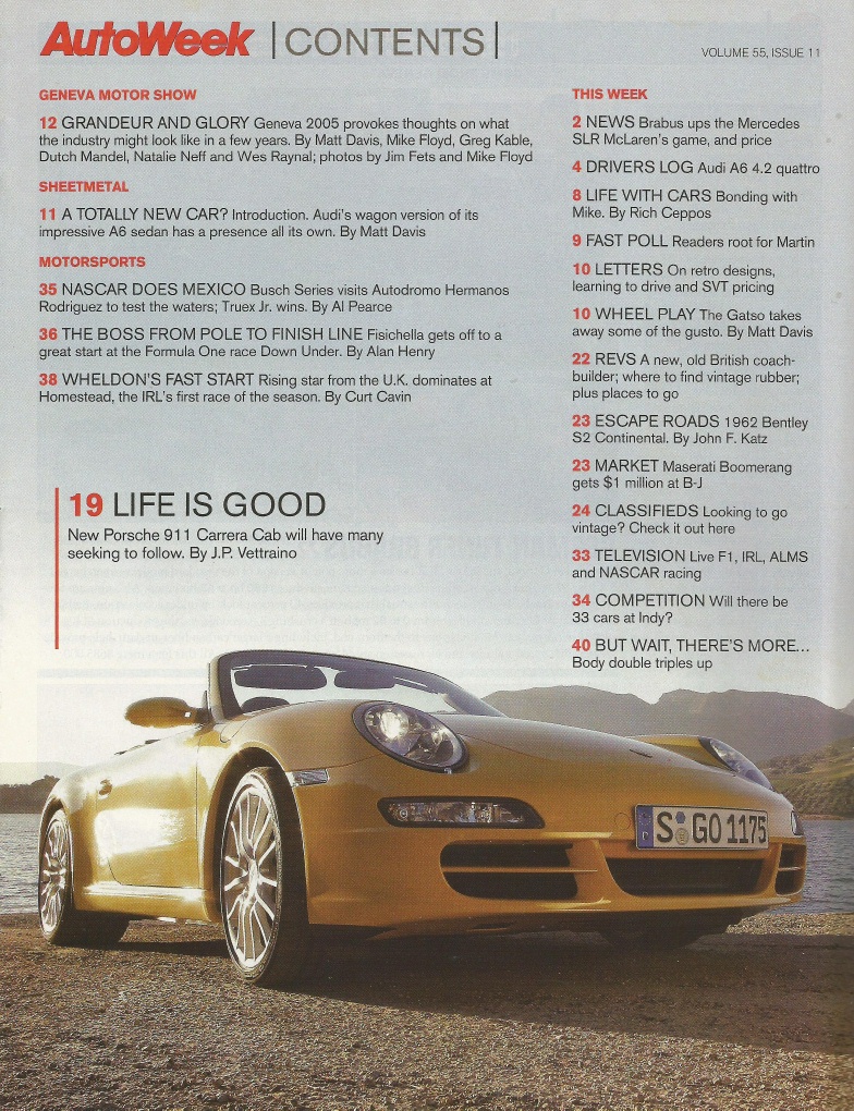 Reviews AUTOWEEK 2005 MAR 14 - 911 CABRIO, A6 AVANT & QUATTRO, BENTLEY S2 CONTINENTAL