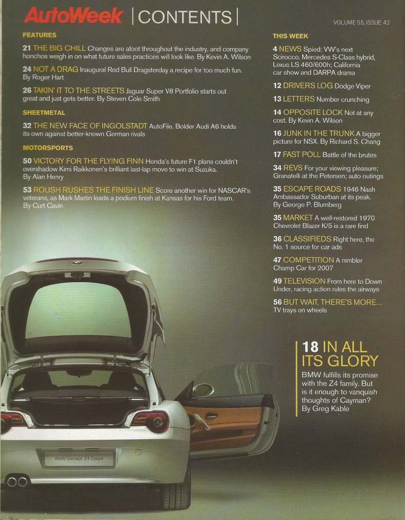Reviews AUTOWEEK 2005 OCT 17 - SCIROCCO & Z4 COUPE, SKYLINE GT-R, '46 NASH SUBURBAN