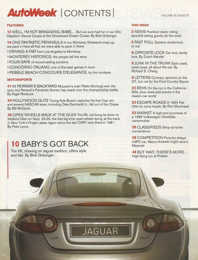 Reviews AUTOWEEK 2005 SEPT 12 - JAG XK, '54 FIAT OTTO VU, MONTEREY HISTORICS, PEBBLE