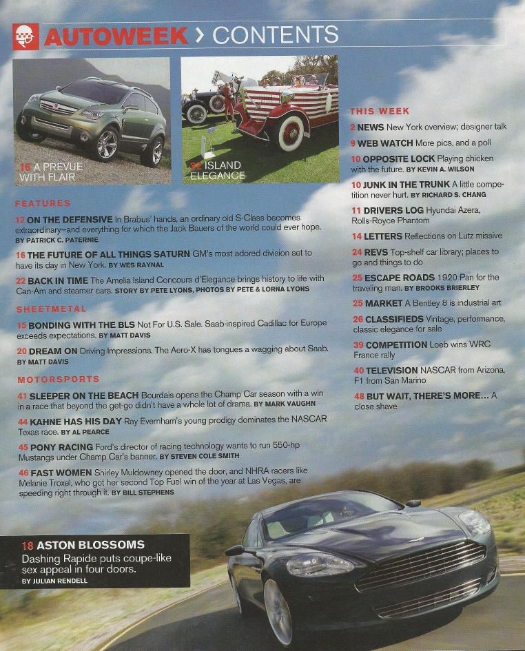 Reviews AUTOWEEK 2006 APR 17 - RAPIDE, SAAB AERO-X, '20 PAN, BRABUS TACTICAL VEHICLE