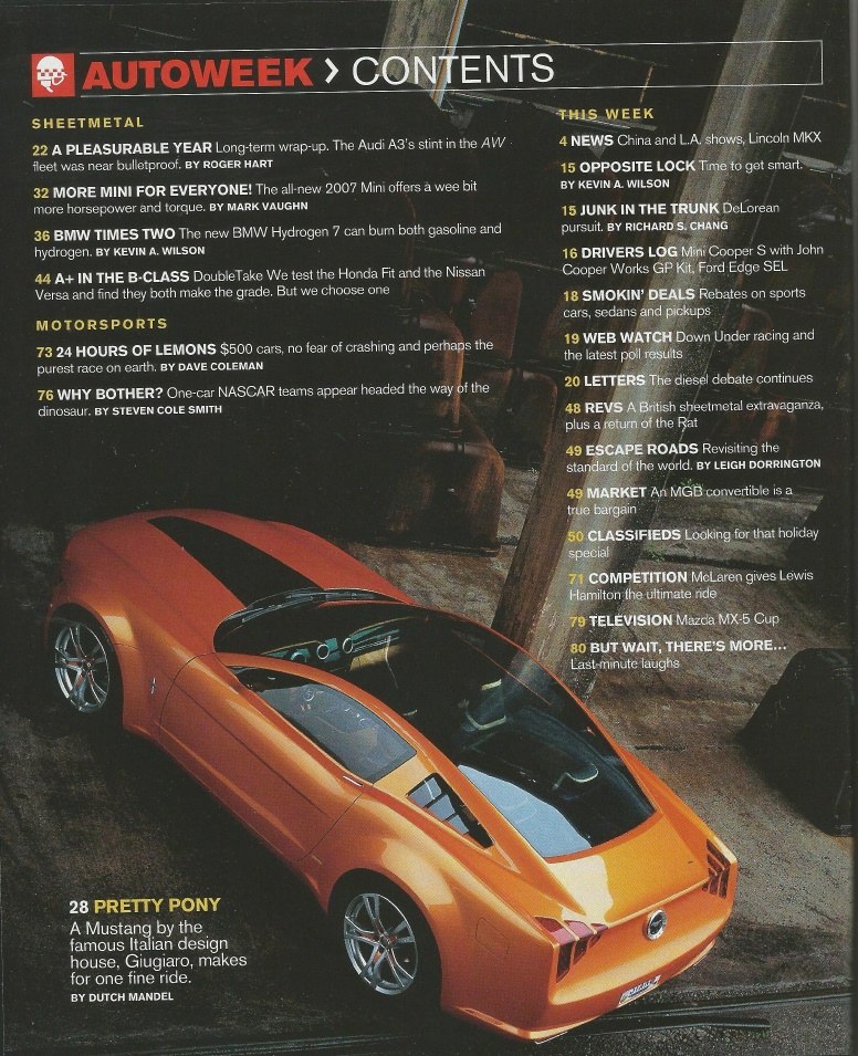 Reviews AUTOWEEK 2006 DEC 04 - MUSTANG CONCEPT, AUDI A3, FIT, VERSA, '59 CADDY DROPTOP