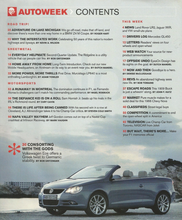 Reviews AUTOWEEK 2006 JULY 03 - LAND ROVER LR2, JAG XKR, VW EOS, '09 BUICK MODEL F