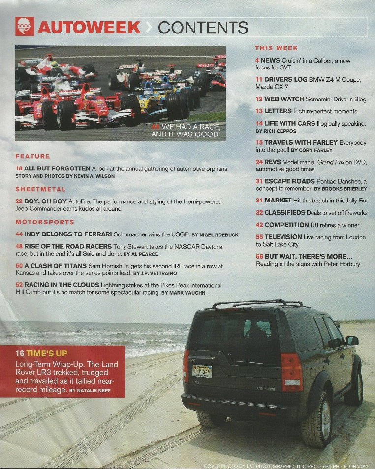 Reviews AUTOWEEK 2006 JULY 10 - HEMI COMMANDER, PONTIAC BANSHEE, Z4 M COUPE, INDY*