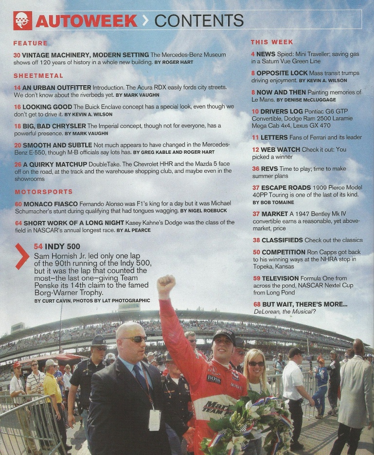 Reviews AUTOWEEK 2006 JUNE 05 - MASERATI MC12 CORSA, INDY 500 & HORNISH, NEW IMPERIAL