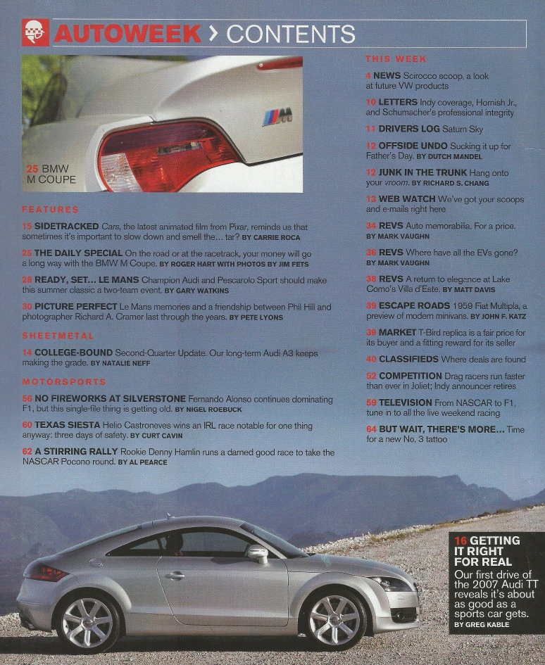 Reviews AUTOWEEK 2006 JUNE 19 - NEW SCIROCCO, TT, '59 FIAT MULTIPLA, LeMANS & AUDI