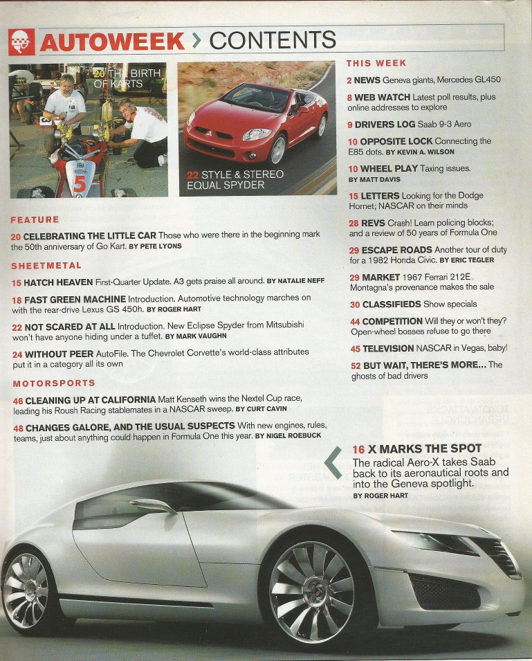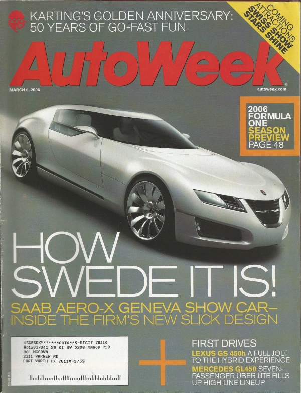 Reviews AUTOWEEK 2006 MAR 06 - SAAB AERO-X, M-B GL450, '82 CIVIC, GS 450h, CORVETTE