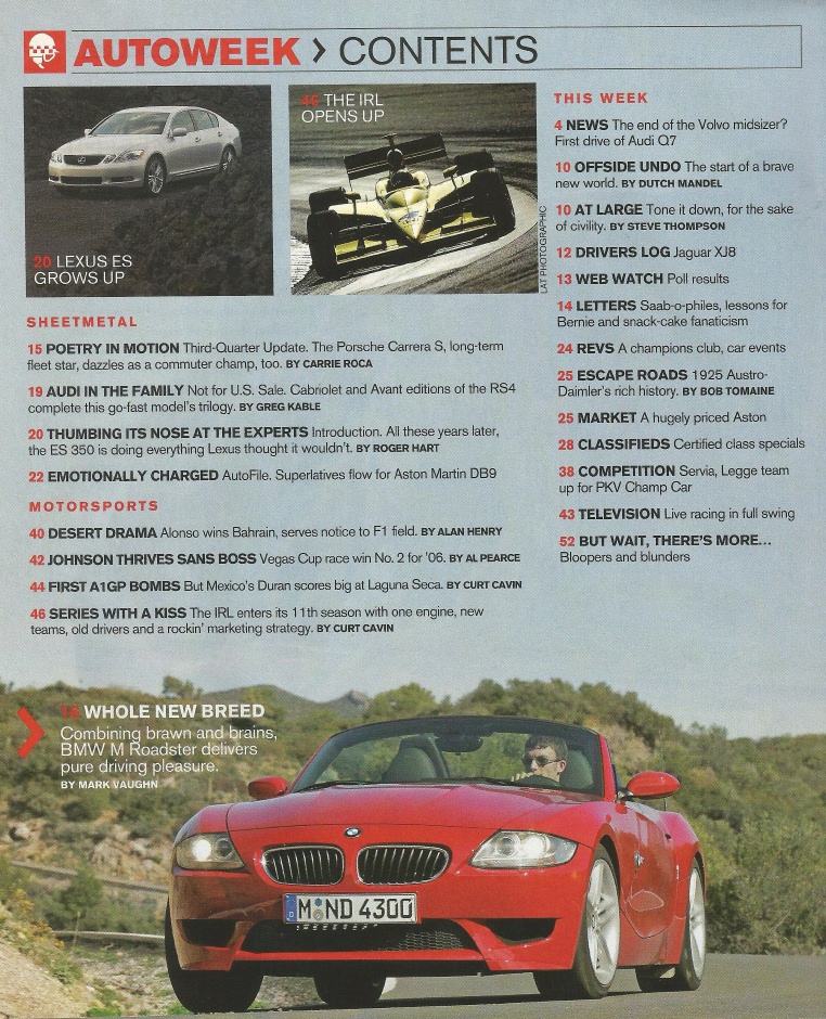 Reviews AUTOWEEK 2006 MAR 20 - TTs, ASTON DB9, AUDI Q7 & RS4, ES 350, AUSTRO-DAIMLER