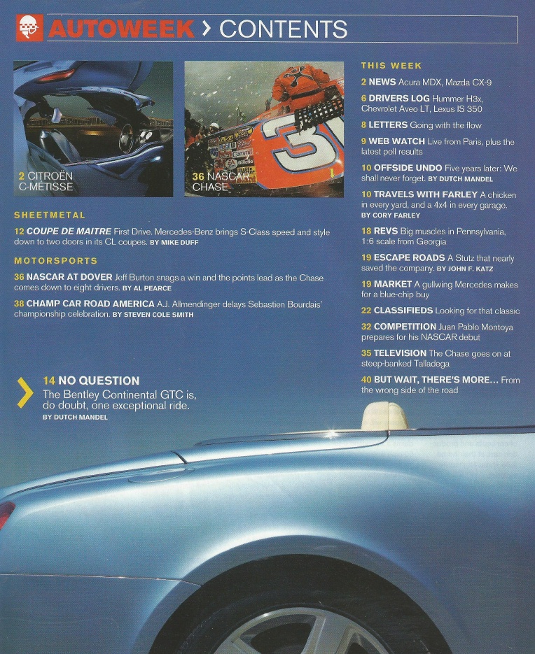 Reviews AUTOWEEK 2006 OCT 02 - M-B CL600, CONTINENTAL GTC, CX-9, MDX, STUTZ VERTICAL 8