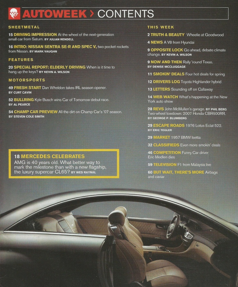 Reviews AUTOWEEK 2007 APR 02 - CL65 AMG, LOTUS ECLAT 522, GENESIS, CAN-AM SPYDER, ASTRA