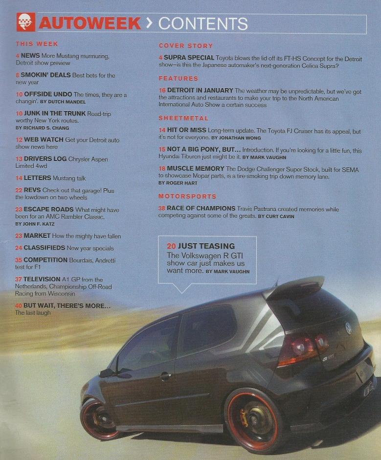 Reviews AUTOWEEK 2007 JAN 01 - SUPRA CONCEPT, VW R GTI, RAMBLER CLASSIC, 392ci SRT8
