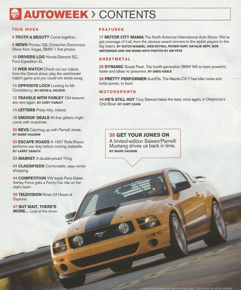 Reviews AUTOWEEK 2007 JAN 22 - NEW M3, CX-7, '37 R-R 25/30, G8, Z9, DETROIT SHOW*