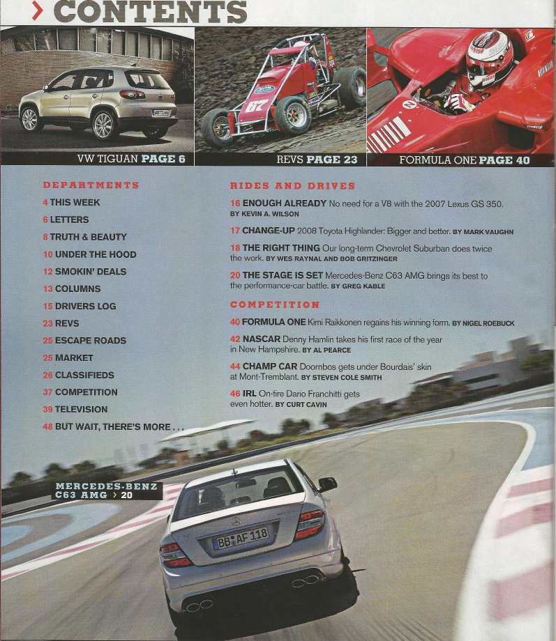 Reviews AUTOWEEK 2007 JULY 09 - PORSCHE GT2, BMW 1-SERIES, C63 AMG, '67 MASERATI 4000