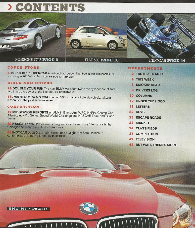 Reviews AUTOWEEK 2007 JULY 23 - M3, M-B McLAREN P11, NEW FIAT 500, '71 AUDI 100 COUPE