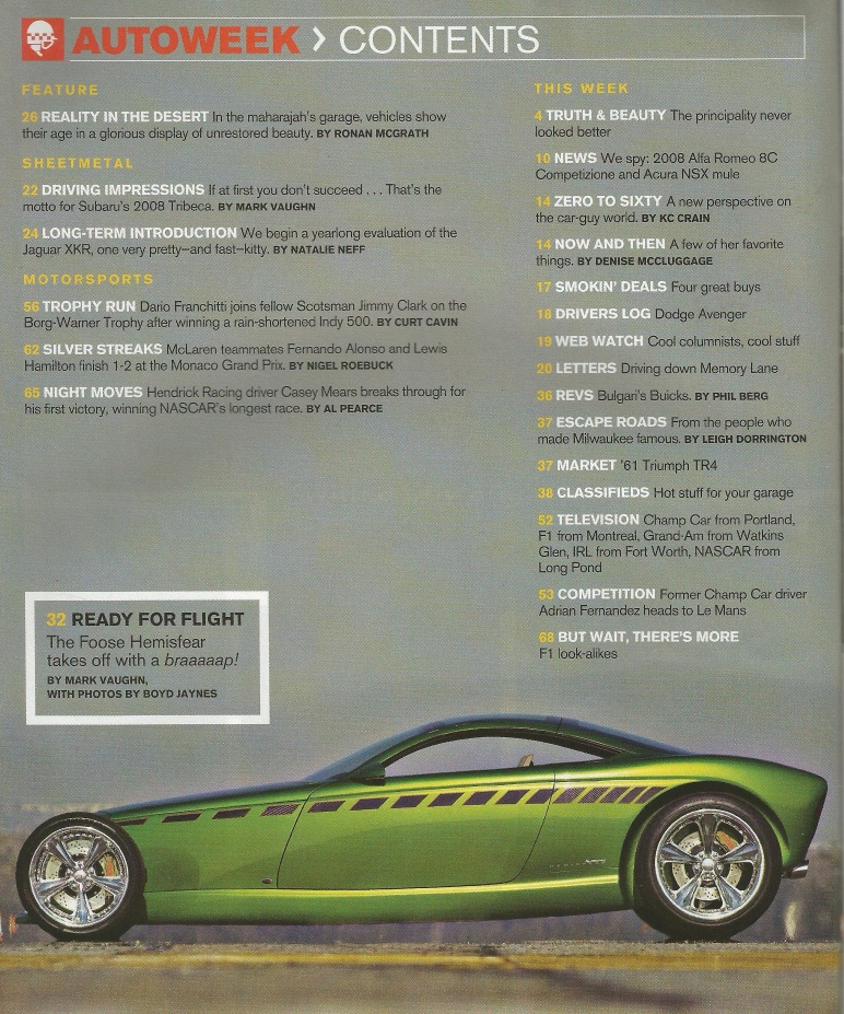 Reviews AUTOWEEK 2007 JUNE 04 - 8C COMPETIZIONE, '53 DVU Spc, JAG XKR, FOOSE HEMISFEAR