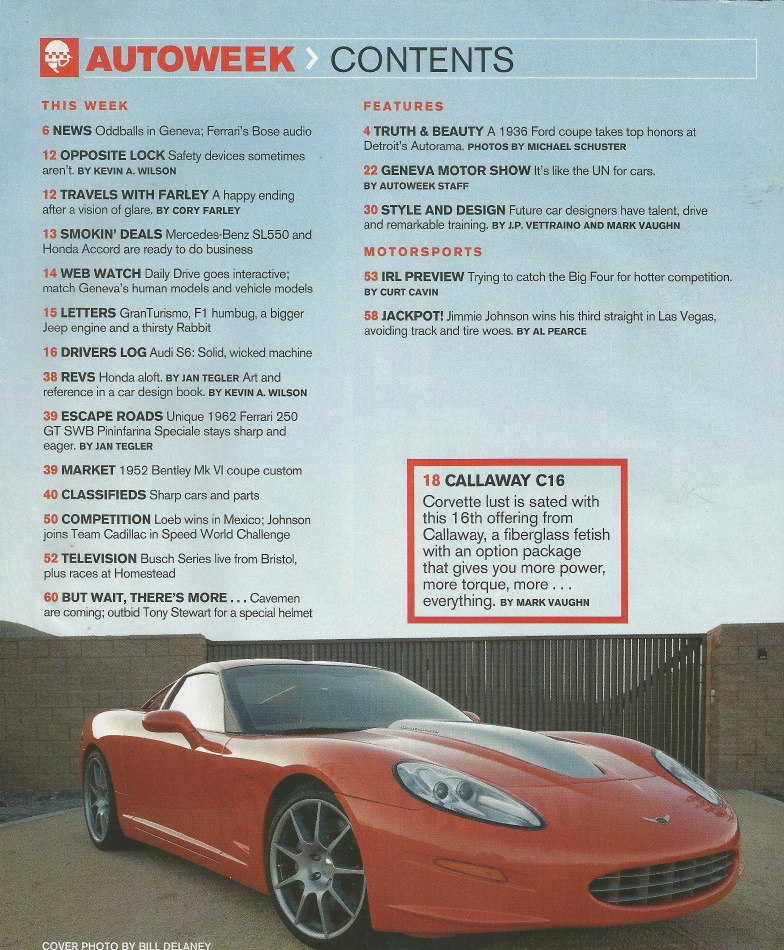 Reviews AUTOWEEK 2007 MAR 19 - CALLAWAY C16, '62 FERRARI 250 SWB, RIDLER, AUDI S5 & S6