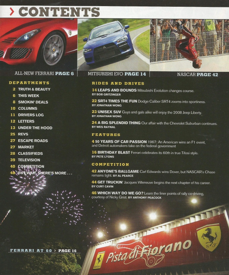 Reviews AUTOWEEK 2007 OCT 01 - EVO, FERRARI CALIFORNIA, '54 SILVER DAWN, CALIBER SRT4
