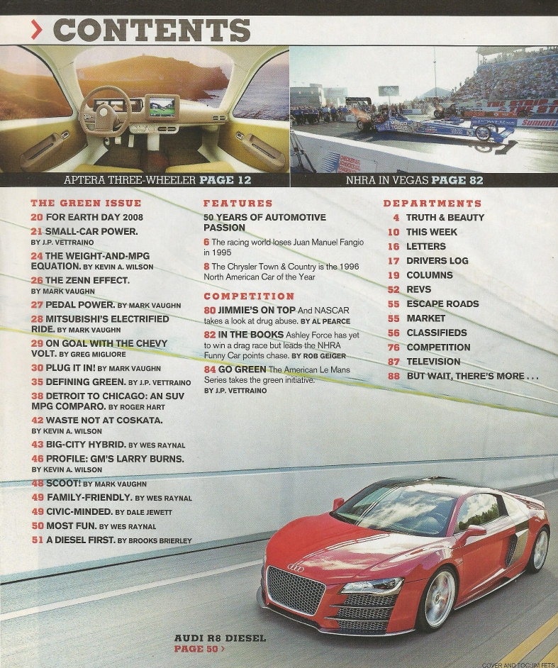Reviews AUTOWEEK 2008 APR 21 - AUDI R8 V12, '18 STANLEY 735, M3, FORD FIESTA, I MiEV