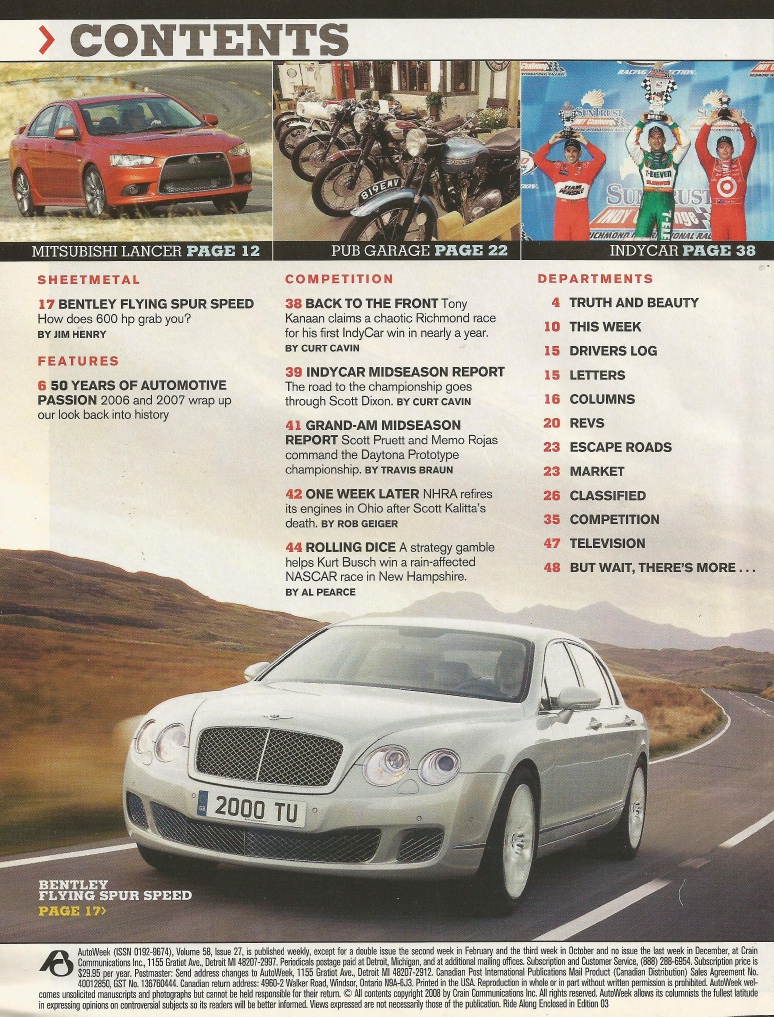 Reviews AUTOWEEK 2008 JULY 07 - RALLIART, FLYING SPUR, THRIFT-T, K BUSH, SCOTT DIXON