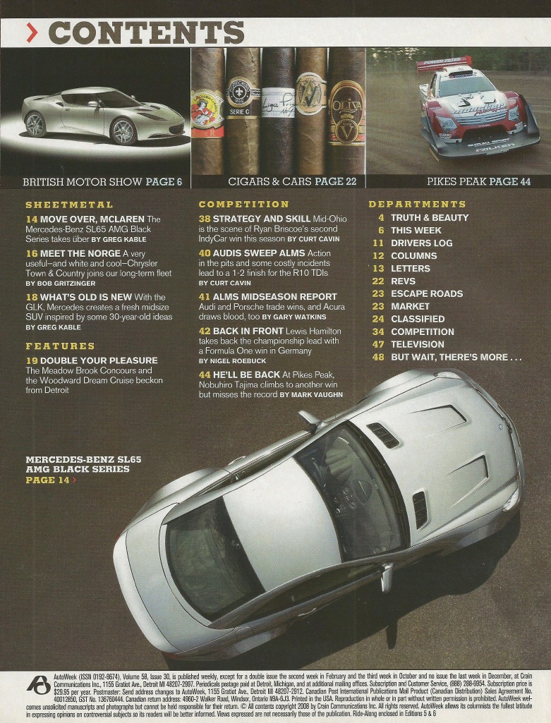 Reviews AUTOWEEK 2008 JULY 28 - SL65 AMG BLACK, NEW CAMARO, 1978 PLYMOUTH VOLARE KIT