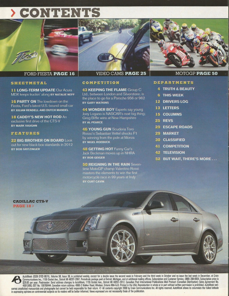 Reviews AUTOWEEK 2008 SEPT 22 - LEGACY S402, NISSAN GT-R, AUDI A6 3T, CADILLAC CTS-V