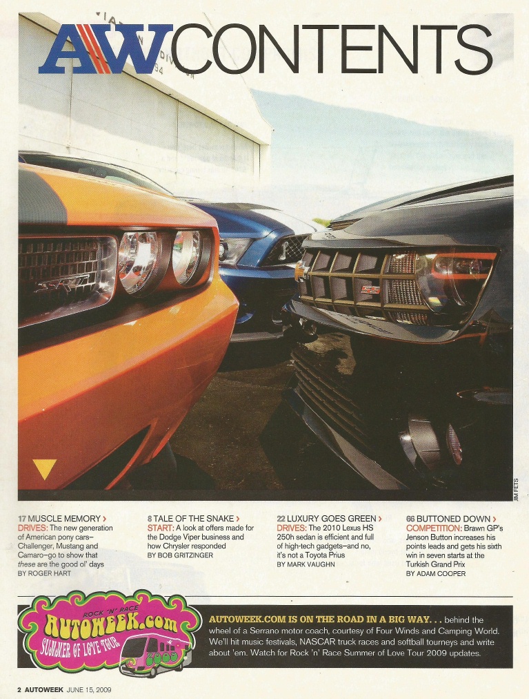 Reviews AUTOWEEK 2009 JUNE 15 - CAMARO SS v CHALLENGER SRT8 v BOSS 429, KURTIS 500S