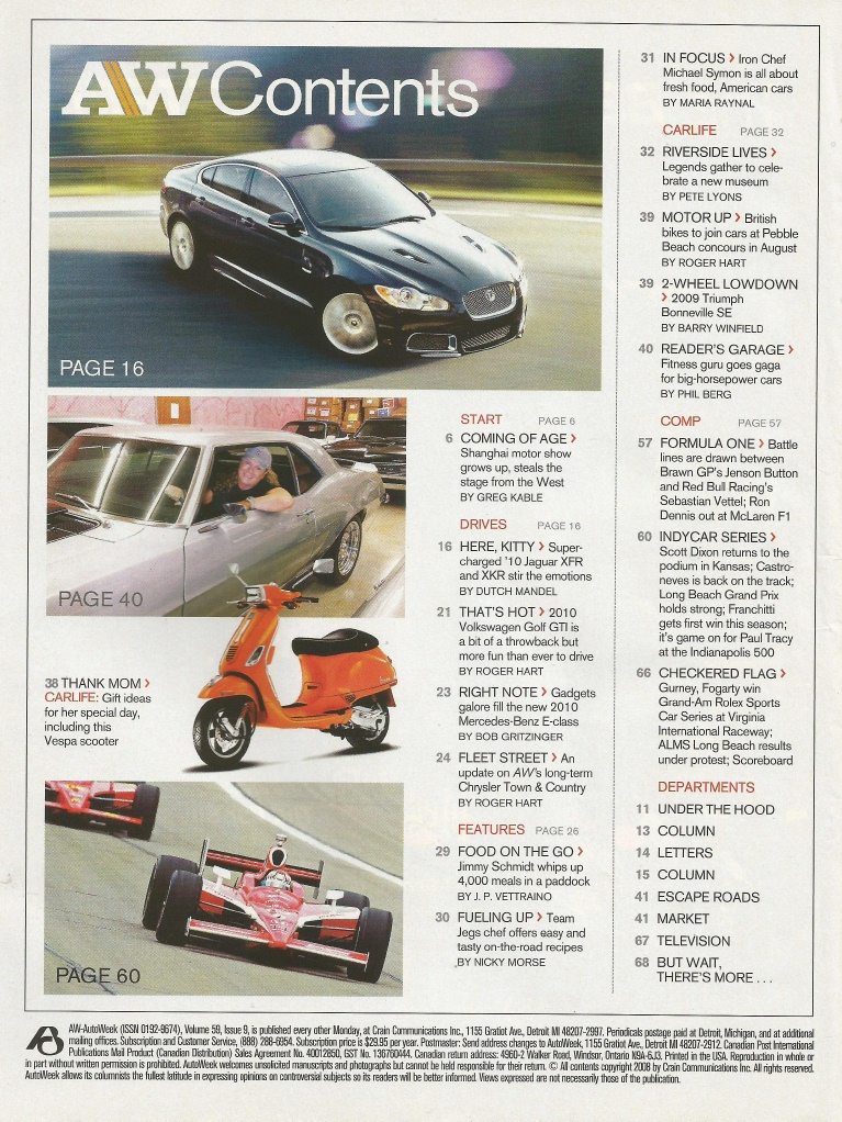 Reviews AUTOWEEK 2009 MAY 04 - GTI, GT500, QUATTROPORTE GT S, XKR-XFR, 1957 JAG COZZI