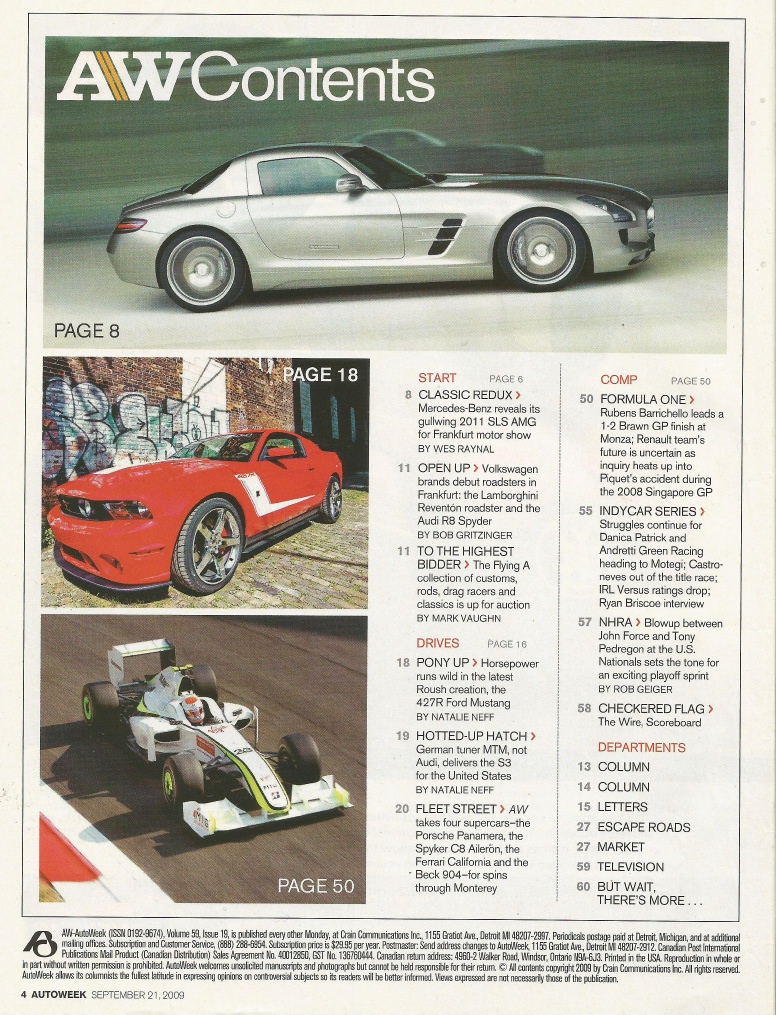 Reviews AUTOWEEK 2009 SEPT 21 - McLAREN MP4-12C, SLS AMG, ROUSH 427 & PINK ‘STANGS*