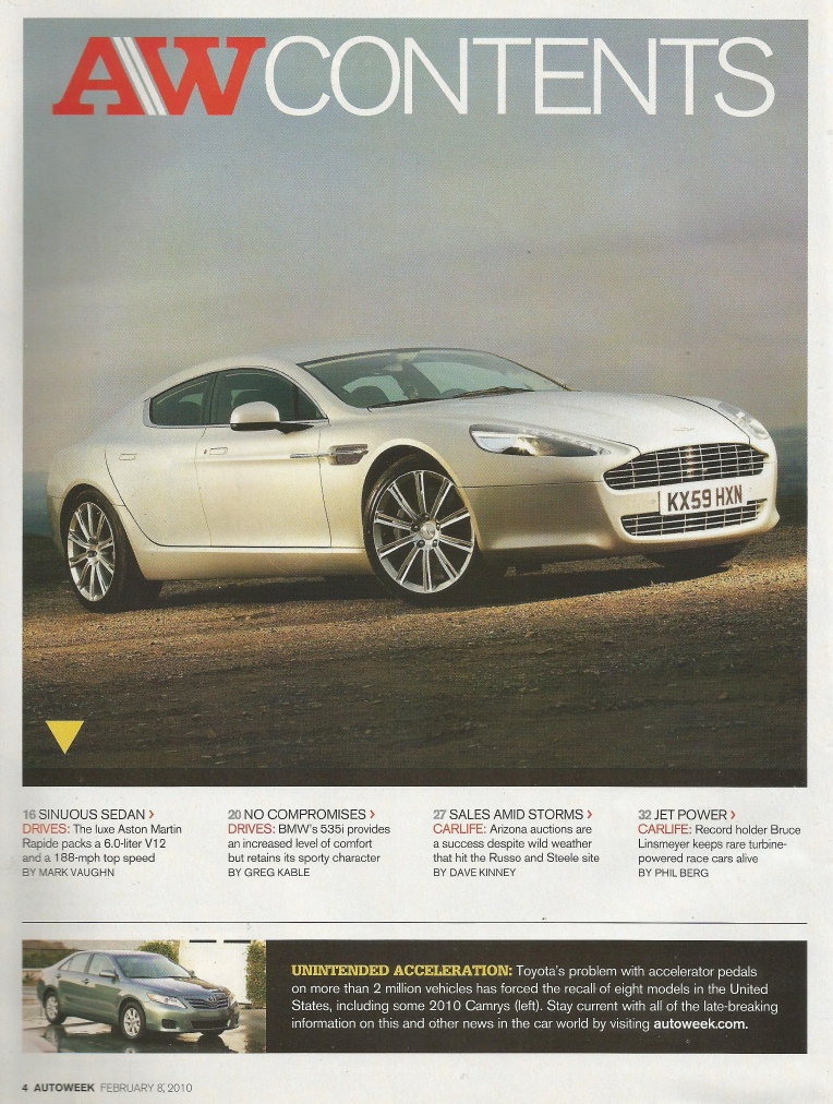 Reviews AUTOWEEK 2010 FEB 08 - ASTON RAPIDE, CALLAWAY VETTE, BMW 5-SERIES, TURBINES