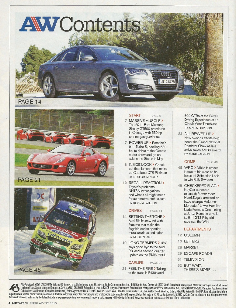 Reviews AUTOWEEK 2010 FEB 22 - XTS PLATINUM, AUDI A8, TESLA, PRUDHOMMEs ‘67 DODGE D700