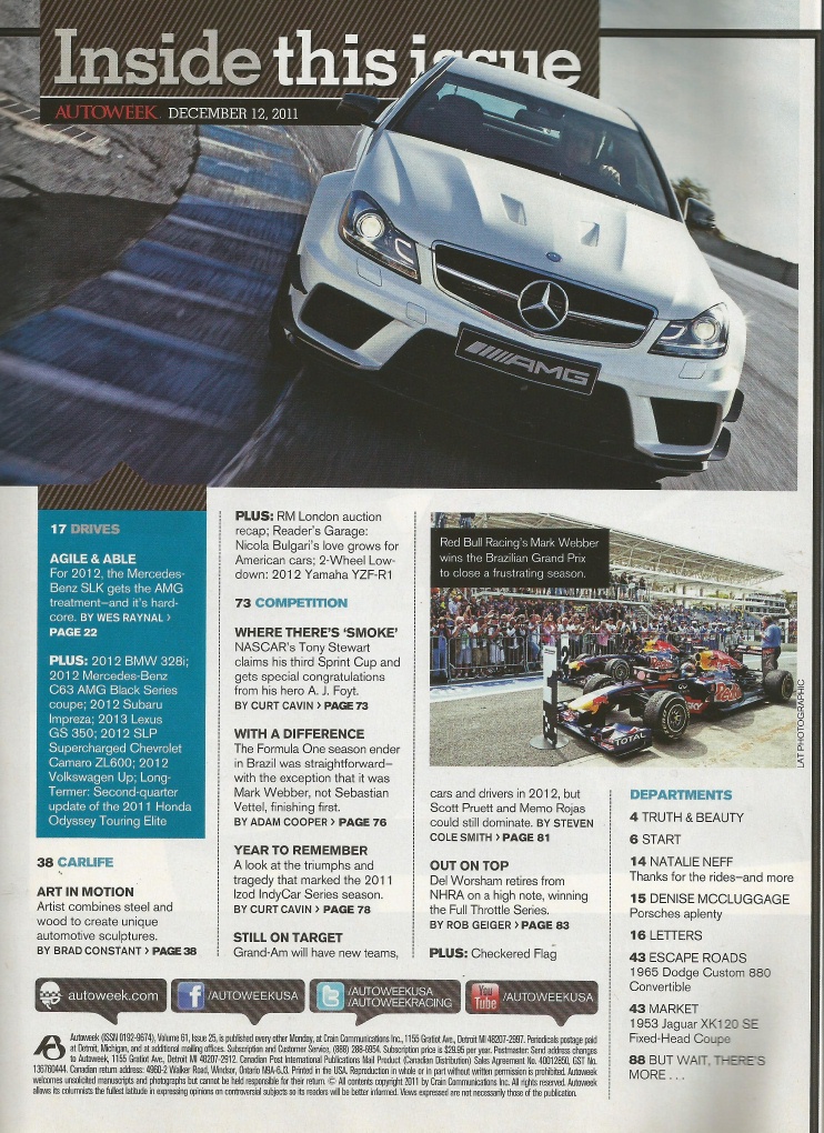 Reviews AUTOWEEK 2011 DEC 12 - SLK AMG, 328i, C63 AMG BLACK, SUPER CAMARO, DODGE 880