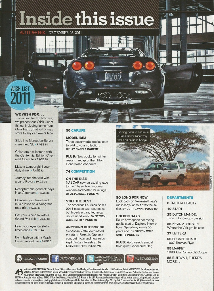 Reviews AUTOWEEK 2011 DEC 26 - MAZDA TAKERI, VETTE, GALLARDO LP 570-4 SUPERLEGGERA