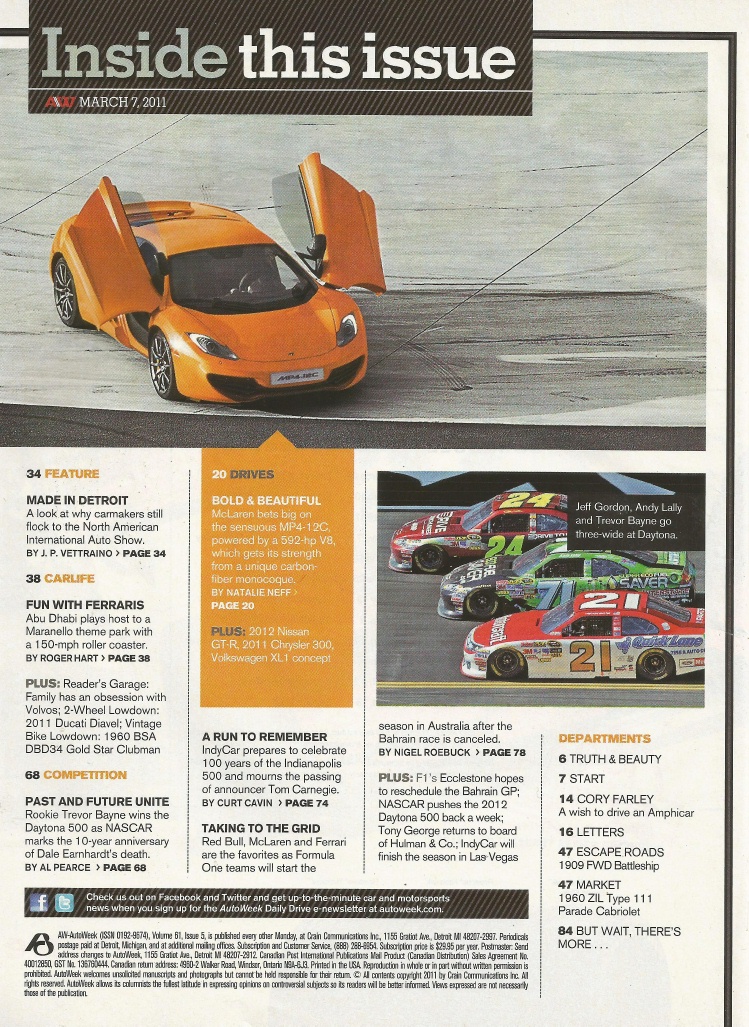 Reviews AUTOWEEK 2011 MAR 07 - McLAREN MP4-12C, NISSAN GT-R, VW XL1 CONCEPT