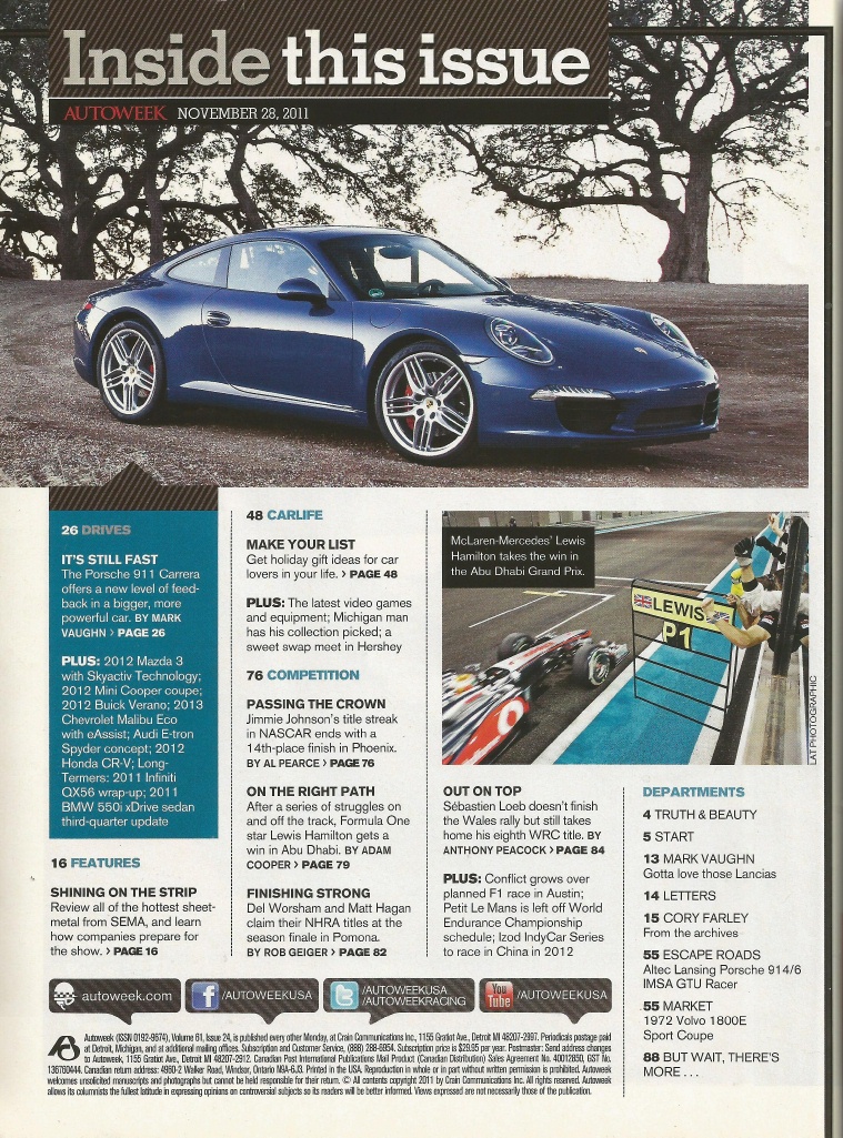 Reviews AUTOWEEK 2011 NOV 28 - 911, CR-V, VERANO, E-TRON Spdr, MINI COUPE, ALTEC 914/6