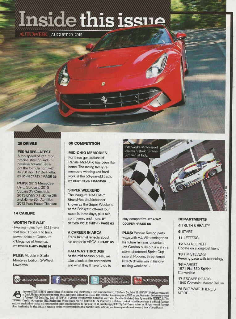 Reviews AUTOWEEK 2012 AUG 20 - FERRARI F12, BMW X1, SUBARU XV CROSSTREK, M-B GLs