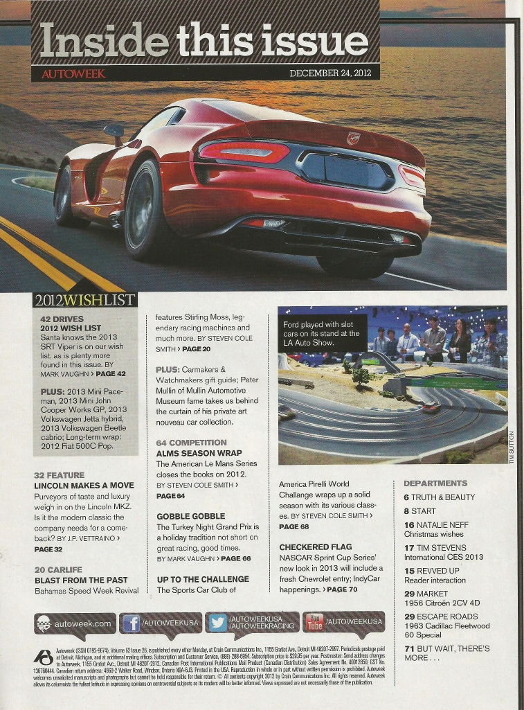 Reviews AUTOWEEK 2012 DEC 24 - VIPER SRT, LINCOLN MKZ, 1963 FLEETWOOD 60, COOPER WORKS
