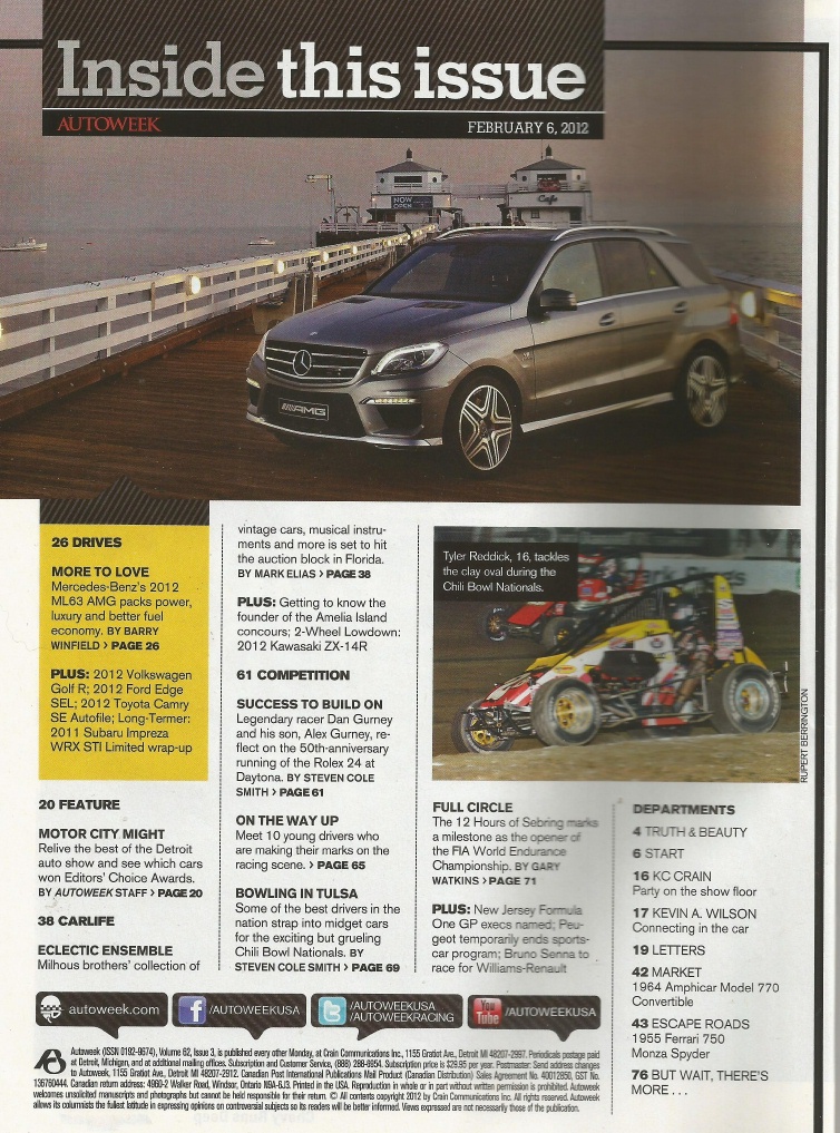 Reviews AUTOWEEK 2012 FEB 06 - CAMRY, ML63 AMG, GOLF R, 1955 FERRARI 750 MONZA SPYDER*