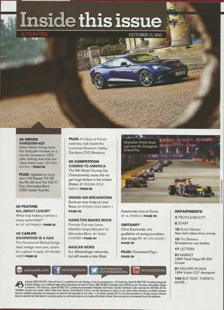 Reviews AUTOWEEK 2012 OCT 15 - JAG F-TYPE, VANQUISH, McLAREN P1, VOISIN C27 AEROSPORT