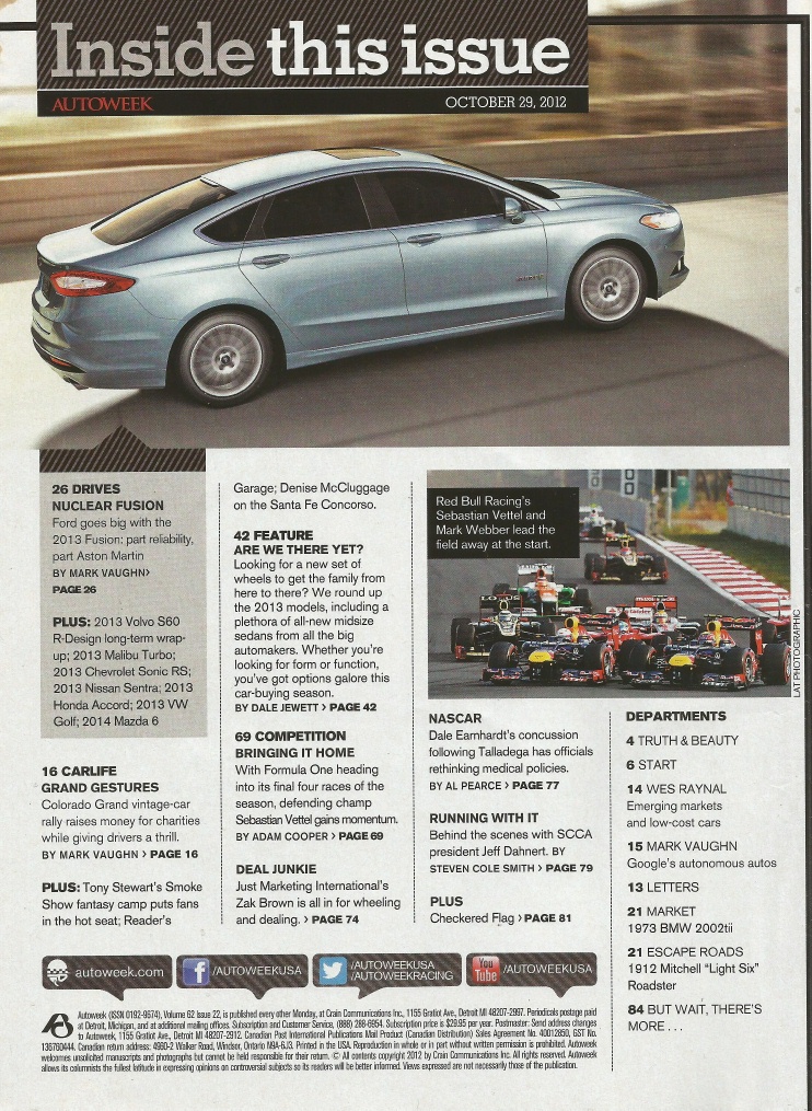 Reviews AUTOWEEK 2012 OCT 29 - NEW CAR GUIDE, MALIBU-T, DAHNERT, Z BROWN, LIGHT SIX*